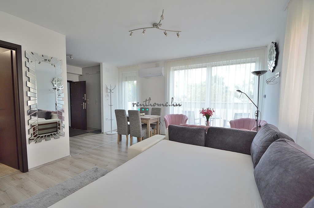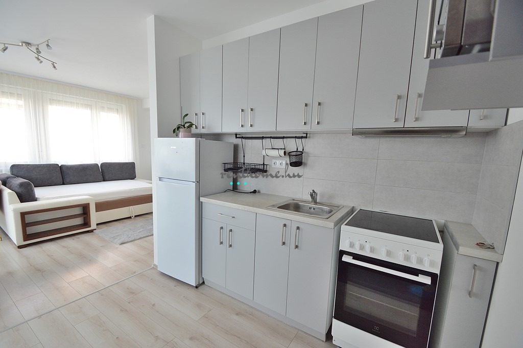 Debrecen, Bartók Béla utcán új 12 lakásos társasházban lévő modern, stúdió lakás keresi bérlőjét. Nagysága 36 m2, 1 szobás + 9 m2 terasz és a belső udvarban egy tágas garázs. Igényesen berendezett, bútorozott amerikai konyha-nappalis lakás ideális 1fő részére. A lakás klímával, modern konyhai gépekkel és minőségi bútorokkal teljesen felszerelve biztosítja, hogy ide csak beköltözni kelljen. Alacsony rezsi várható a jól szigetelt, modern épületben lévő napkollektor rásegítése miatt. Bérleti díj:: 220.000 Ft /hó + 2 havi kaució