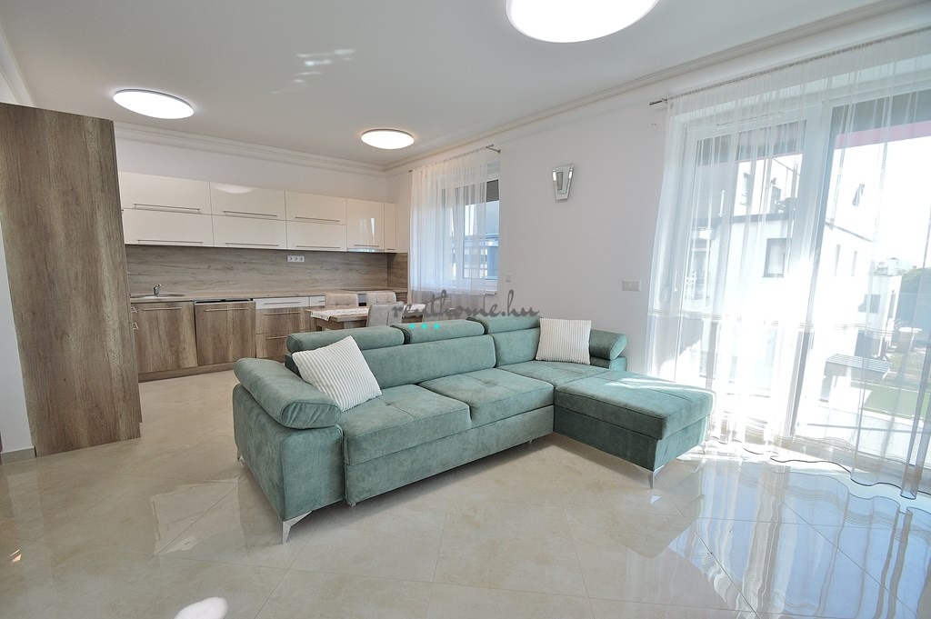 lapos tetőn került elhelyezésre. A melegvíz ellátáshoz napkollektorok is kerültek telepítésre. A lakások nappali területén padlófűtés és mennyezethűtés, a szobákban integrált mennyezet fűtés és hűtés létesül. A fűtési, hűtési energia fogyasztás mérése lakásonként egyedileg megoldott. A használati hideg-melegvíz mennyisége szintén lakásonként mért. A lakásnak szinte 0 Ft-os rezsije lesz.2026.05.07 től elérhető ! Garázs 30.000.-Ft /hó A lakás bérleti díja: 400.000.-Ft/hó